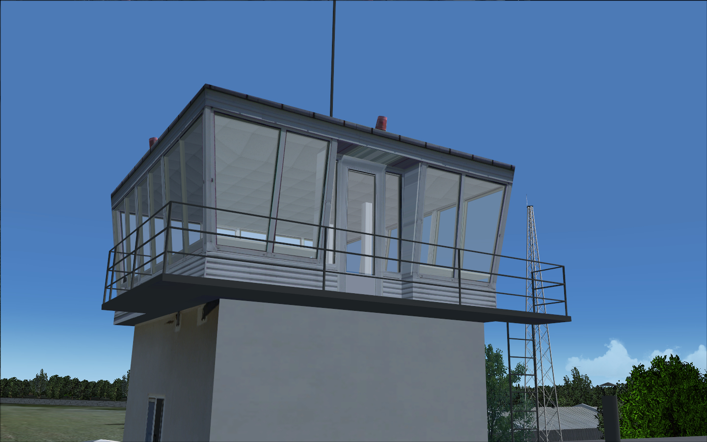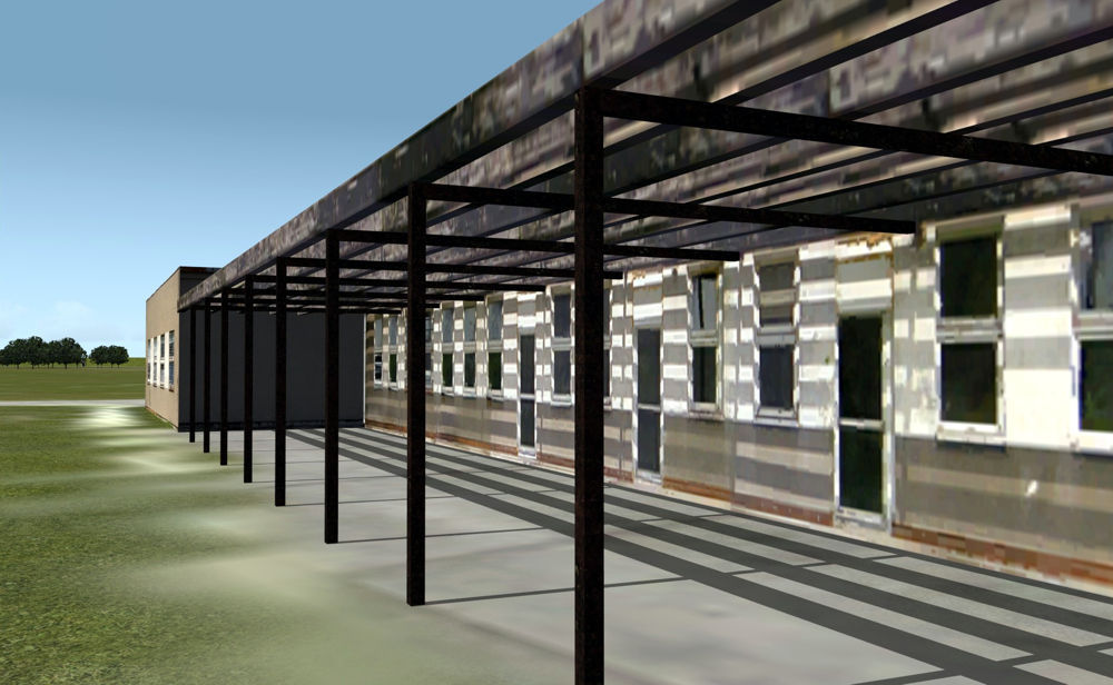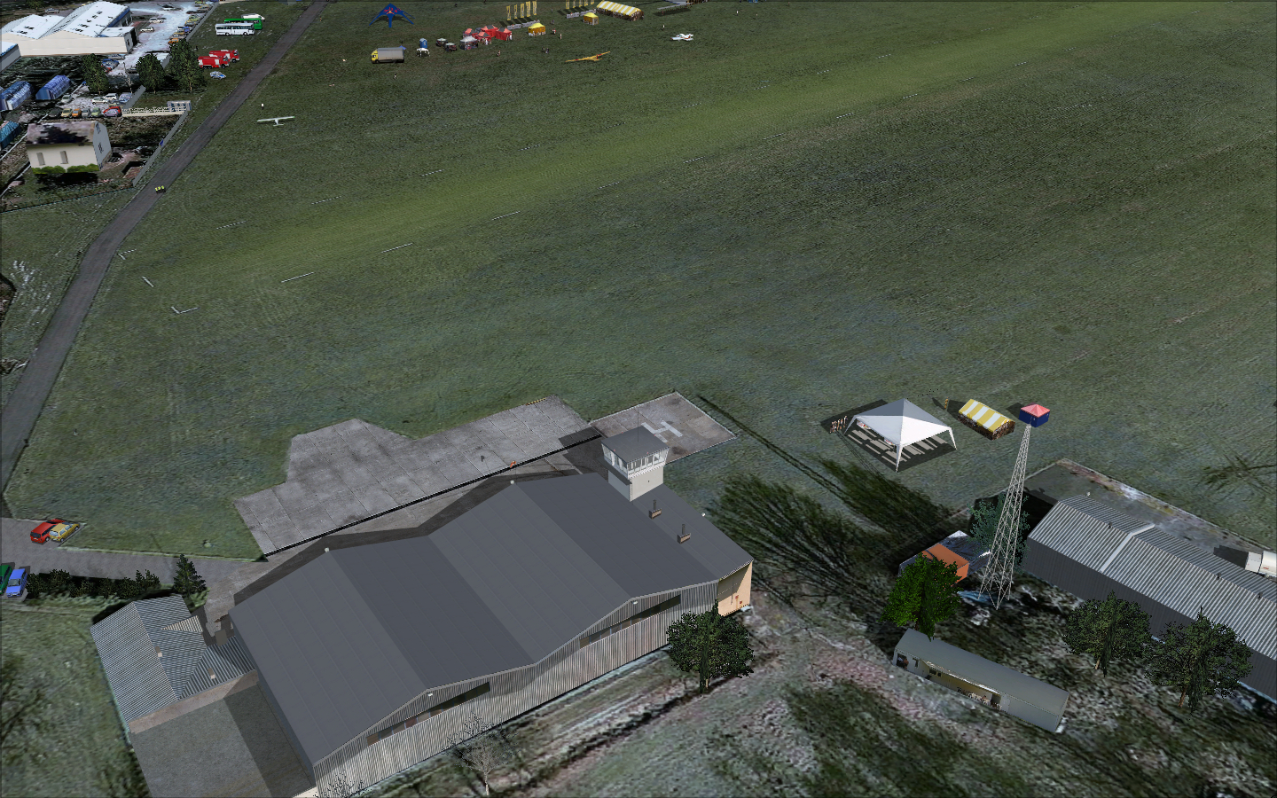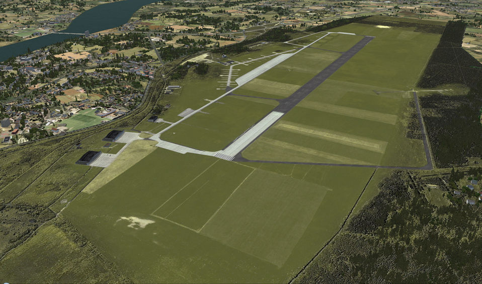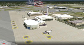 There were some 3D objects added from FSSC (Flight Simulator Scenery Creator) like hangars and antennas and a ground layout designed in AFCAD by Lee Swordy. The scenery was published for a very short time and just for training purposes.