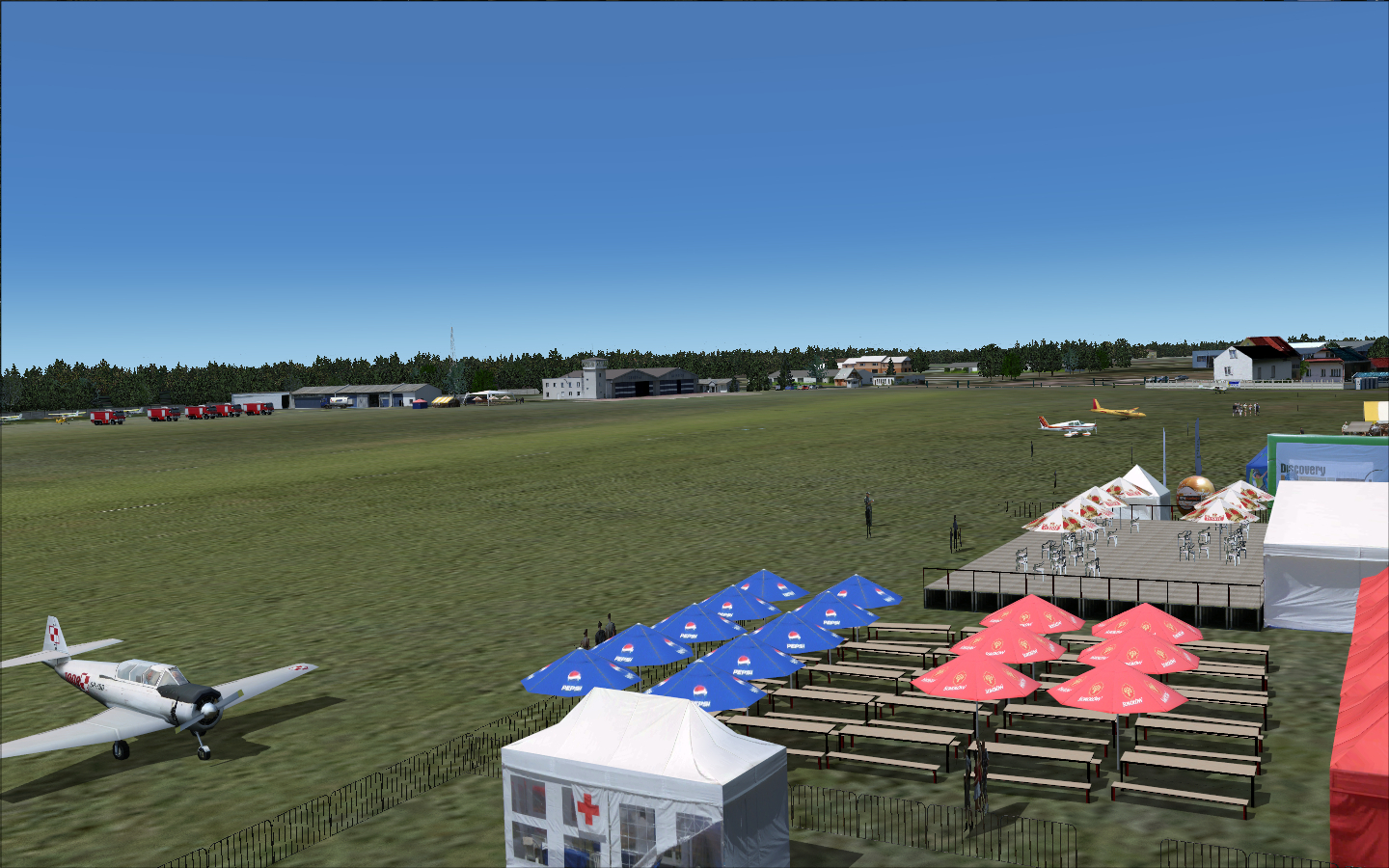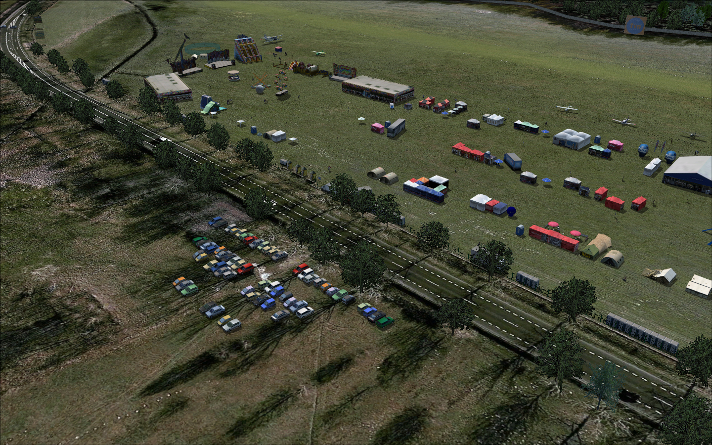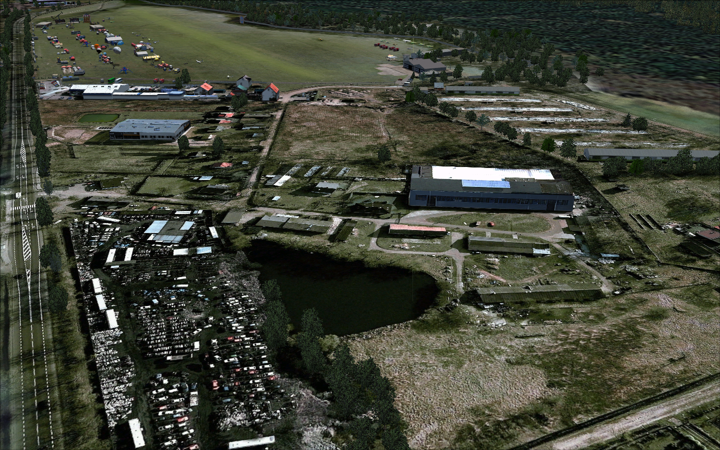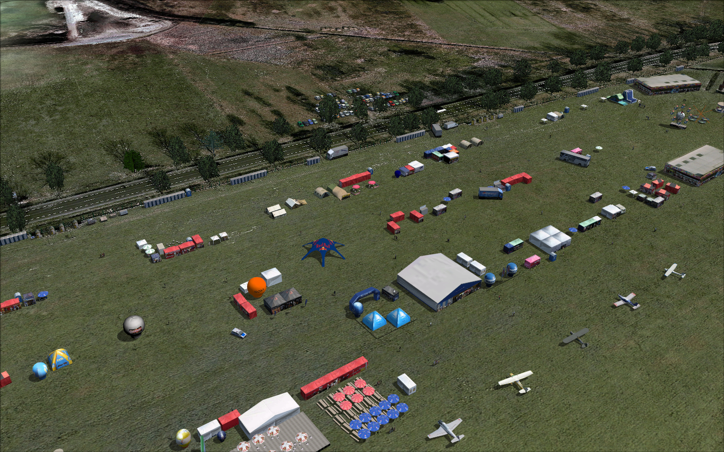 There were some 3D objects added from FSSC (Flight Simulator Scenery Creator) like hangars and antennas and a ground layout designed in AFCAD by Lee Swordy. The scenery was published for a very short time and just for training purposes.