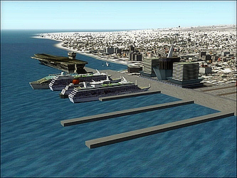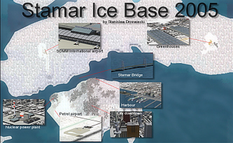 A detailed scenery of a fictional Stamar city located on the Antarctic Peninsula. The project included city terrain made with EZ Landclass, lots of objects built in EOD (Easy Object Designer) - city downtown, nuclear power plant, two airports, detailed control tower with interior, huge greenhouses, a harbour and a 3,5km-long bridge. Package also included weather themes, saved flights, AI traffic file and an AI timetable for the area. The city looked nice at night as well, all abjects had night textures applied.
