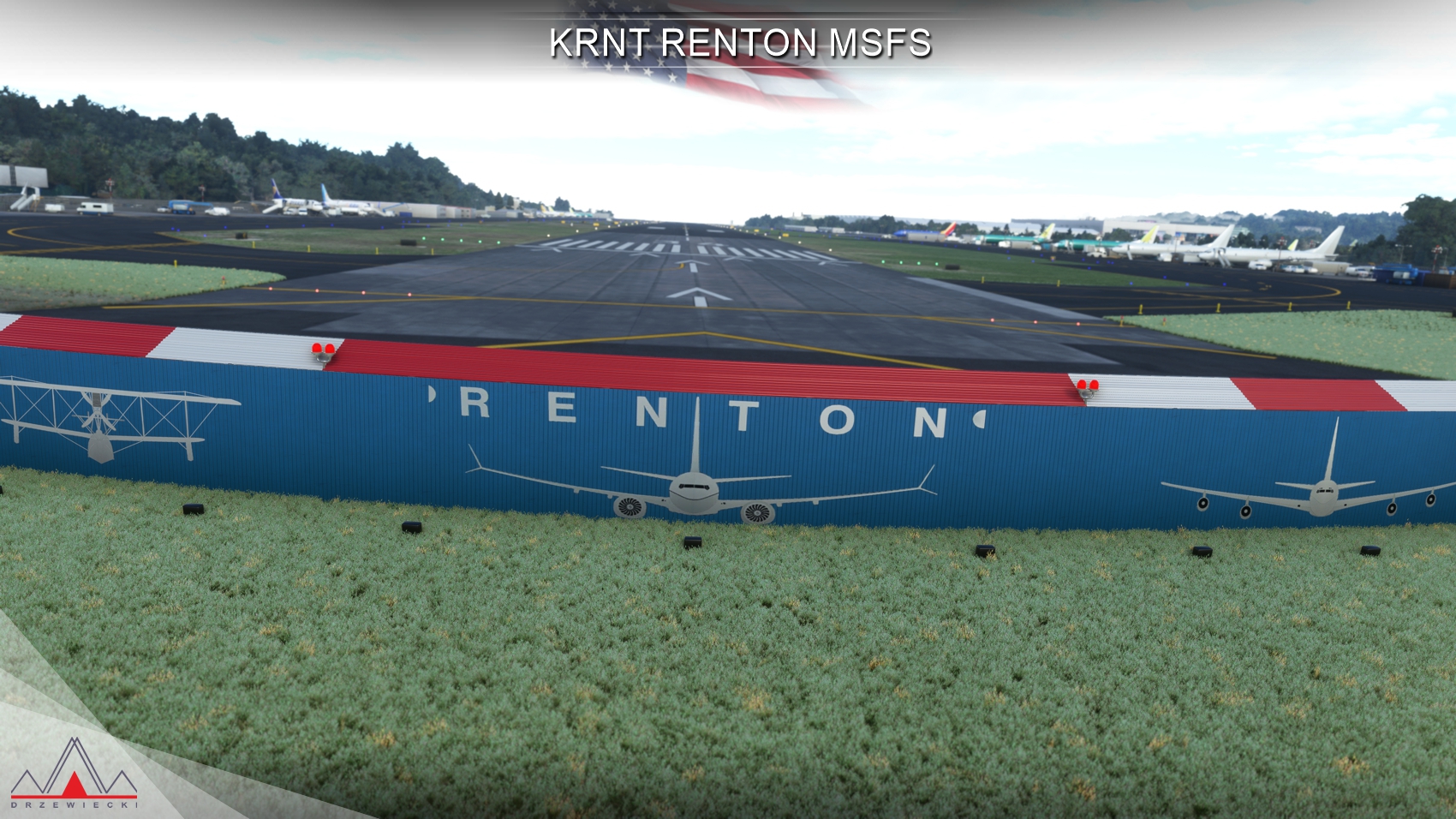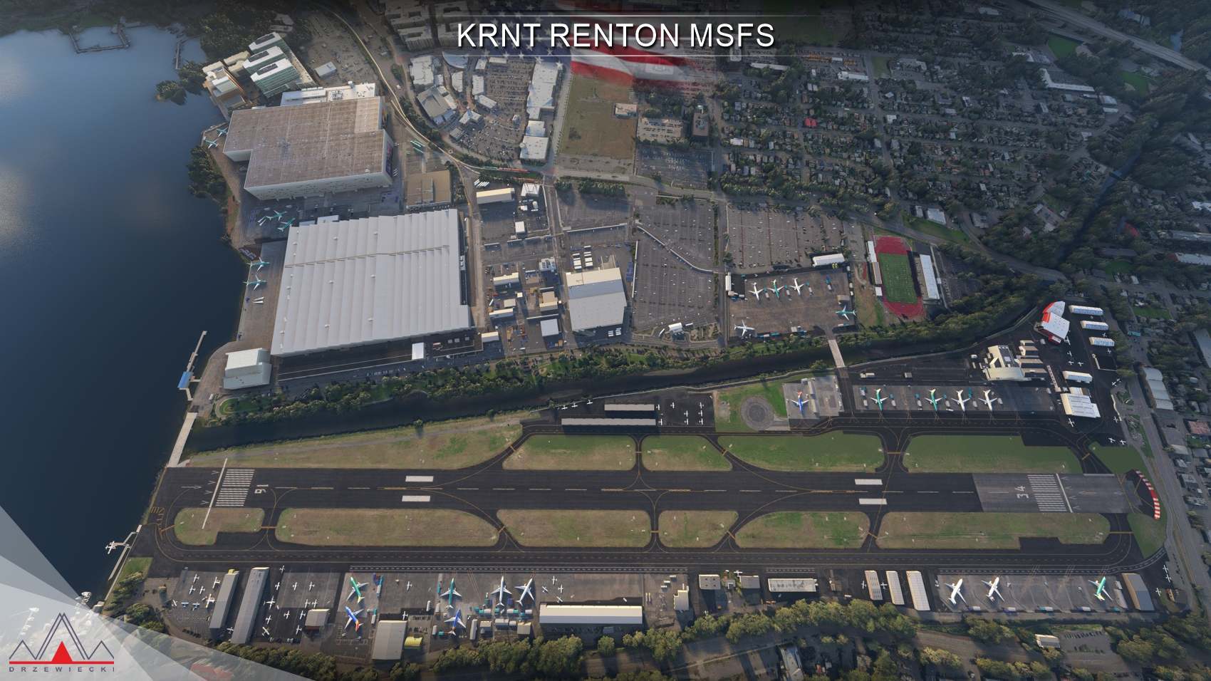 of KRNT Renton Municipal Airport, featuring extensive details throughout the whole airport